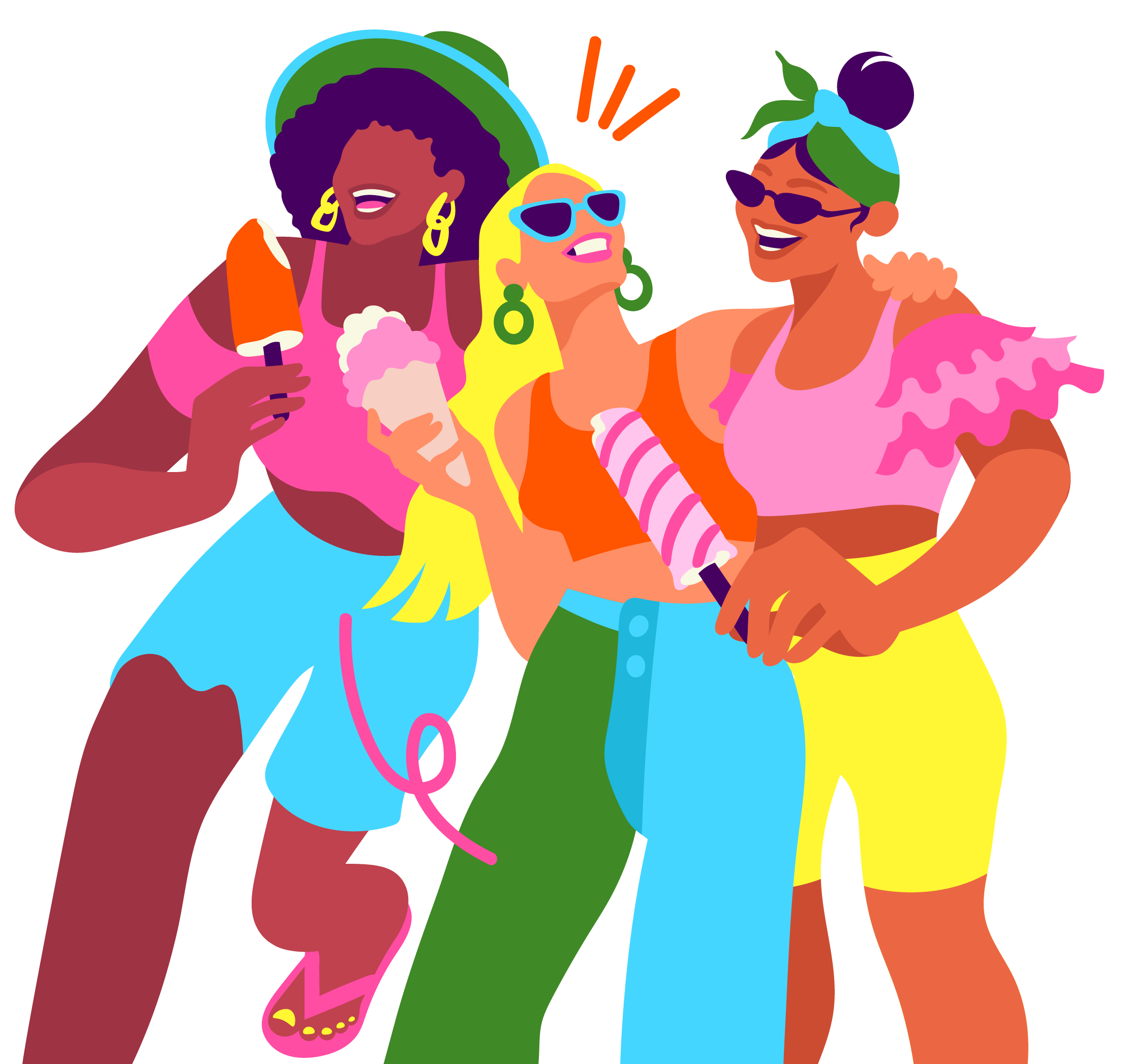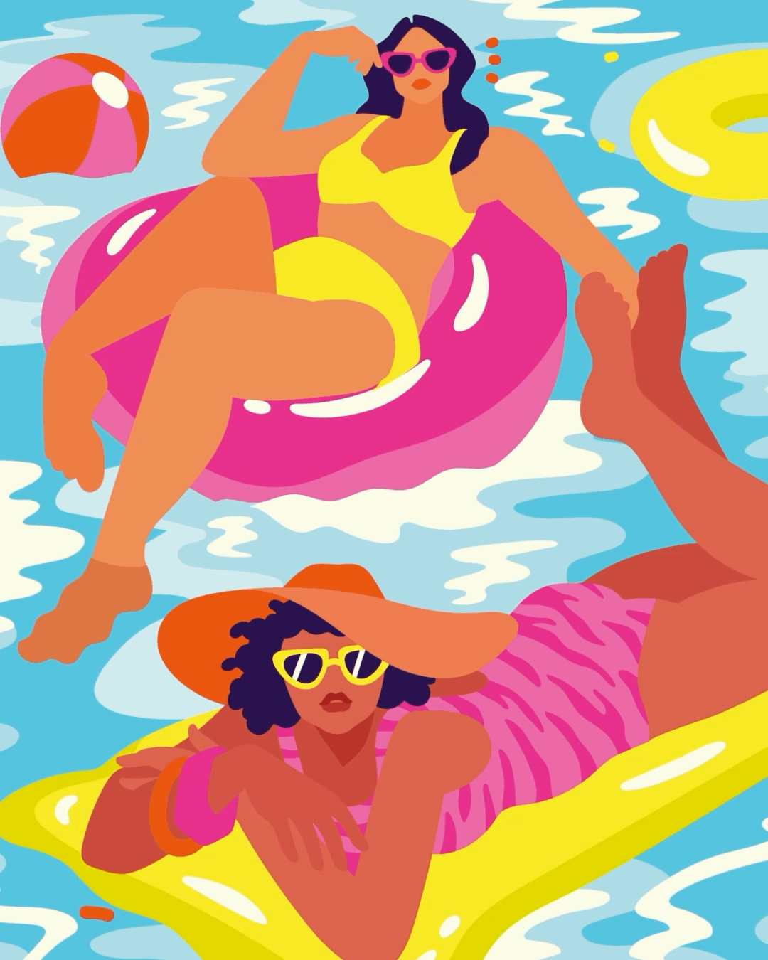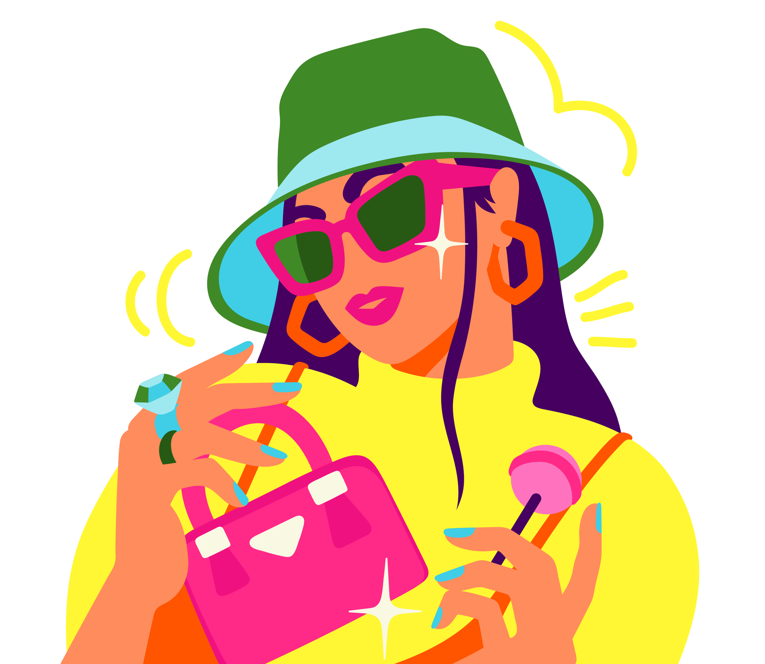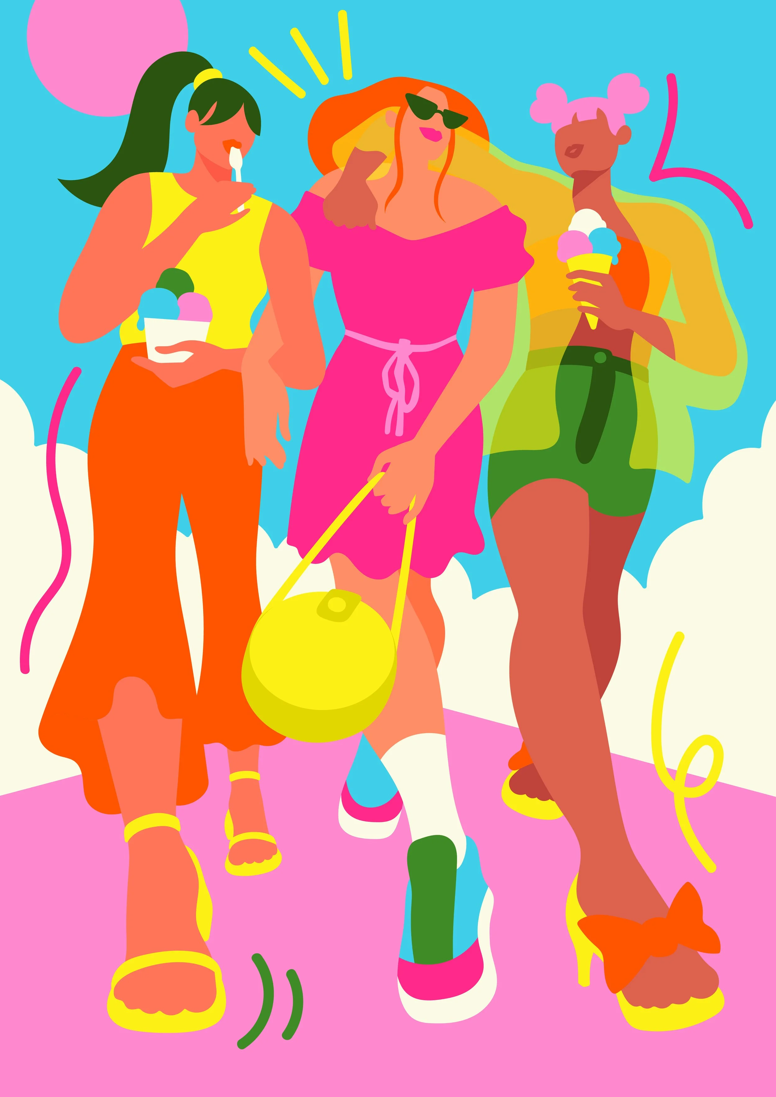 The illustrations were applied across multiple POS elements – from large-scale banners and digital displays to carpet design. Using the Spring/Summer 2023 color palette and strong characters, the visuals were designed to capture visitors’ attention and invite them into a playful world where they could feel empowered and confident.